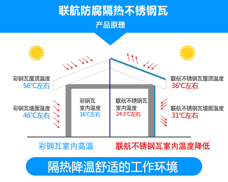 聯(lián)航不銹鋼瓦專注于高性能不銹鋼彩涂瓦,是國家大力鼓勵和倡導的環(huán)保材料。